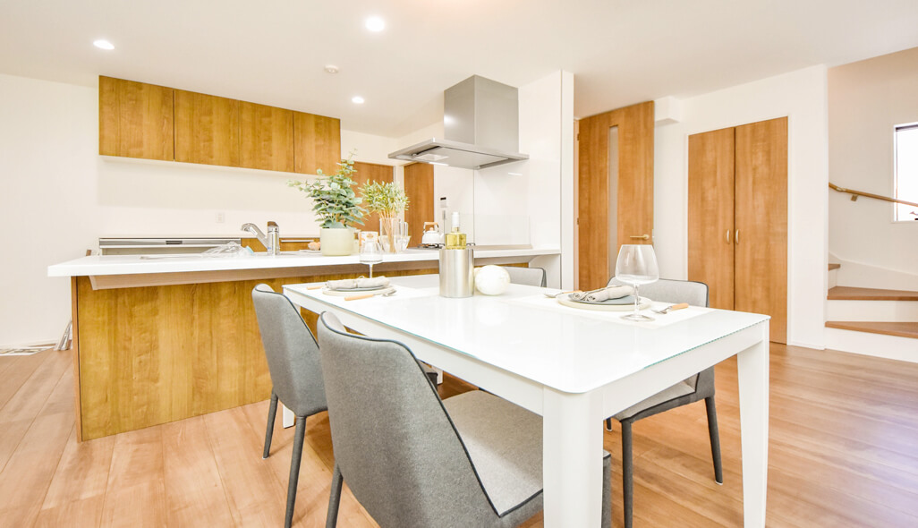 一年中暖かな光に包まれる南向きの邸。2階のリビングは心地よい光が差し込み明るく快適な空間となります。2階と3階に設けたバルコニーでは洗濯物もカラッと気持ちよく乾きます。シューズクロークや各居室に設けた充実の収納で整理整頓がしやすくスッキリきれいに片付きます。玄関のシューズクロークはたくさんの靴はもちろん、アウトドア用品等もしまっておけて大変便利です。