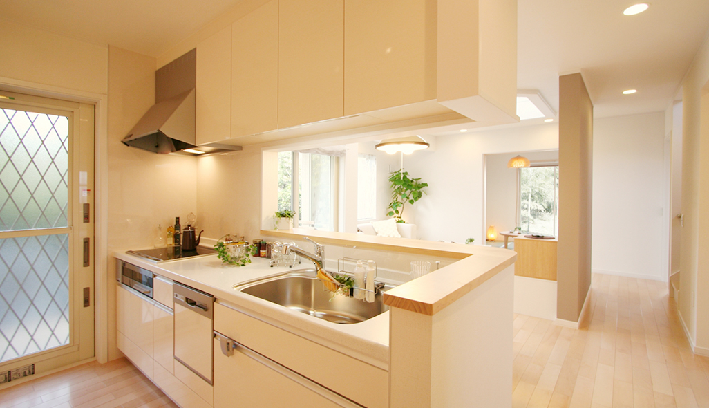 2階部分は丸々LDKとなっており、19帖以上の開放的な大空間が広がります。プライバシーに配慮した2階リビングのため、周りを気にすることなく、ゆったりと家族団らんのひと時をお過ごしいただけます。